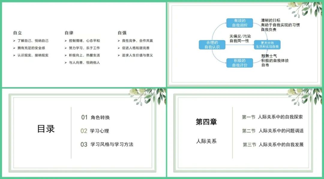 刘玎老师通过心理学的原理和方法,从合理认知自我、积极体验自我到有效管理自我等方面协助同学们发展出健康、积极、有力的自我意识,在人生旅途中顺利、幸福、坚定地行驶,走向自我实现和自我超越。