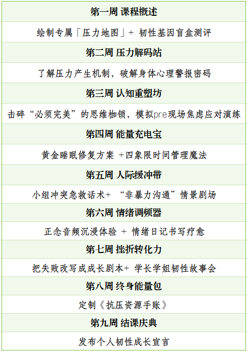 在这里,我们将压力转化为成长燃料,助你解锁内在韧性。请记住,压力并非你的对立面,而是你尚未开发的超能力场。这个秋天,加入我们,找到与压力共舞的平衡之道,让挑战成为你蜕变的契机!