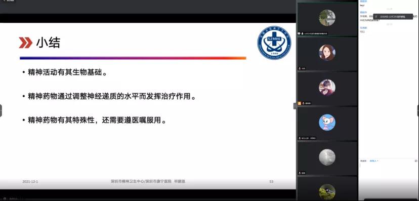 此次培训活动毕主任从以下四个方面展开详细讲解:精神障碍及其病因学研究、精神障碍的药物治疗机制、常见精神药物的介绍以及精神药物治疗的相关注意事项。