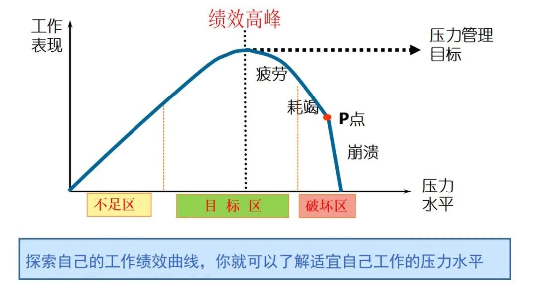随后,郭老师提议教师们积极探索自己的工作绩效曲线,找到自己的绩效高峰、疲劳、衰竭、崩溃时的压力水平,形成压力管理规划,当压力不足时激励自己,当感受到疲劳时及时进行放松,保持在适当的压力范围。