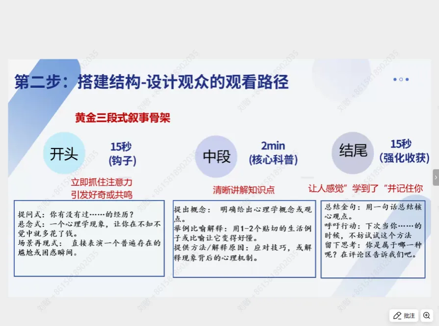 接下来,薛老师结合具体案例,分享心理科普短视频的创作流程与技巧,指导学生用科学合理的方法来规划创作方案、提高执行效率。在创作过程中,可采取“黄金三段式”来搭建结构框架,撰写脚本单来使创作思路清晰有据,剪辑时通过“粗剪-精剪-包装-输出”的流程来操作。