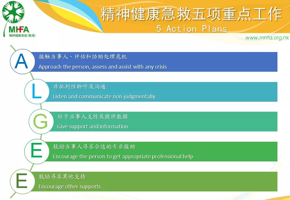 在两天的培训中,导师以相互交流的形式开展精神健康急救知识的教学,通过一个个鲜活的例子,将精神健康急救的五项重点工作(ALGEE)融会贯通。学员们也通过小组讨论,角色扮演等练习活动加强了对精神健康急救知识的灵活运用和对人的精神症状做出及时的判断和处置技能。