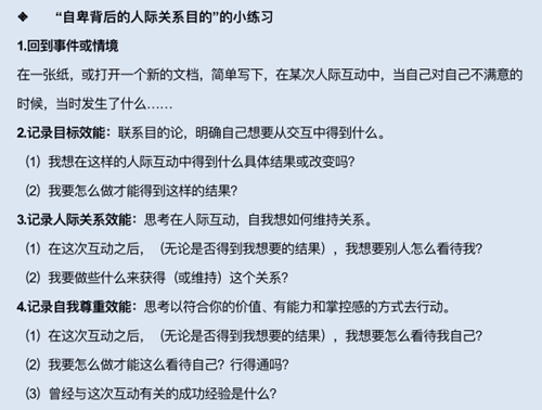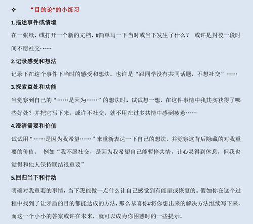 📖跟随者目的论的练习指导语,整理了自己的思绪,这个过程也是让我平静下来的过程。由此,我能更加清楚我接下来应该怎么做,并且缓解我的焦虑和难受。