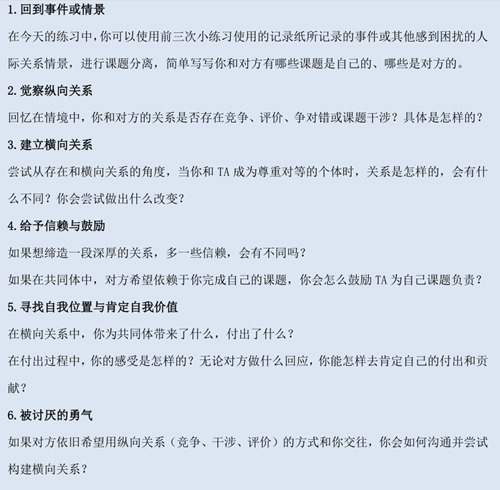 📖这次的练习强化了我对建立横向关系的意识,和以鼓励代替表扬的平等沟通方式。