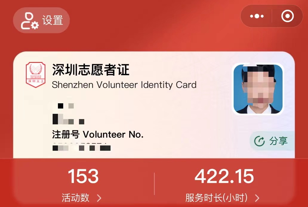 2022年底,志愿深圳的义工时累计达到了400小时。并不是说自己有多优秀,只是觉得志愿服务可以体现出奉献的人生价值,前不久学校发通知正式结束了校内的核酸检测,仍然记得过去的一年校内核酸活动的参与,许许多多的志愿者不怕苦不怕累,积极参与其中,正是印证了大学生良好的精神风貌与热情,我也会继续将这份精神延续下去,加油!