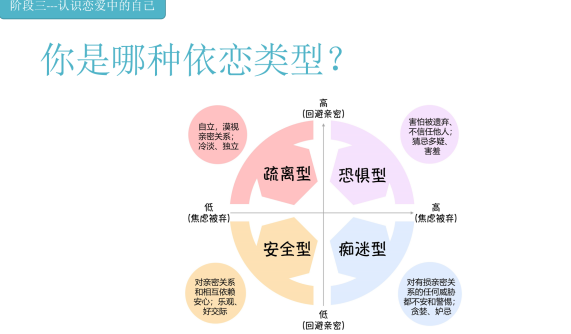 在“展望未来“中,带领者与参与同学探索自己的依恋类型,识别自己对伴侣和关系的核心需求。在讨论中,带领者分享了健康成熟的恋爱关系是“成长疗愈型关系”,它具有以下特点:1.双方在心理上相互独立;2.注重爱和连接,减少过于浪漫理想化的亲密关系幻想;3.保持关系边界;4.互相支持伴侣的发展;5.直接、开放、公平地交流。