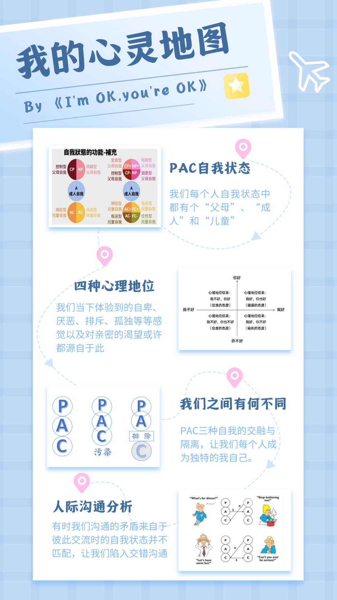 在这7天里,我们将跟随本书的重要章节,通过“自我状态”、“心理地位”、“我们之间有何不同”和“沟通分析”四站景点游览自己的“心灵地图”,具体阅读章节和活动内容我们将在开营仪式上为大家公布,感兴趣的朋友们,扫描文末的二维码报名,即可加入我们!
