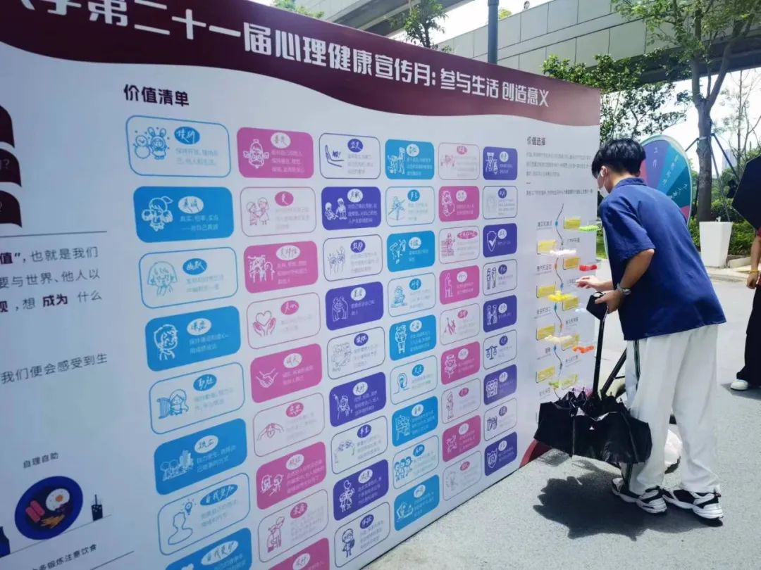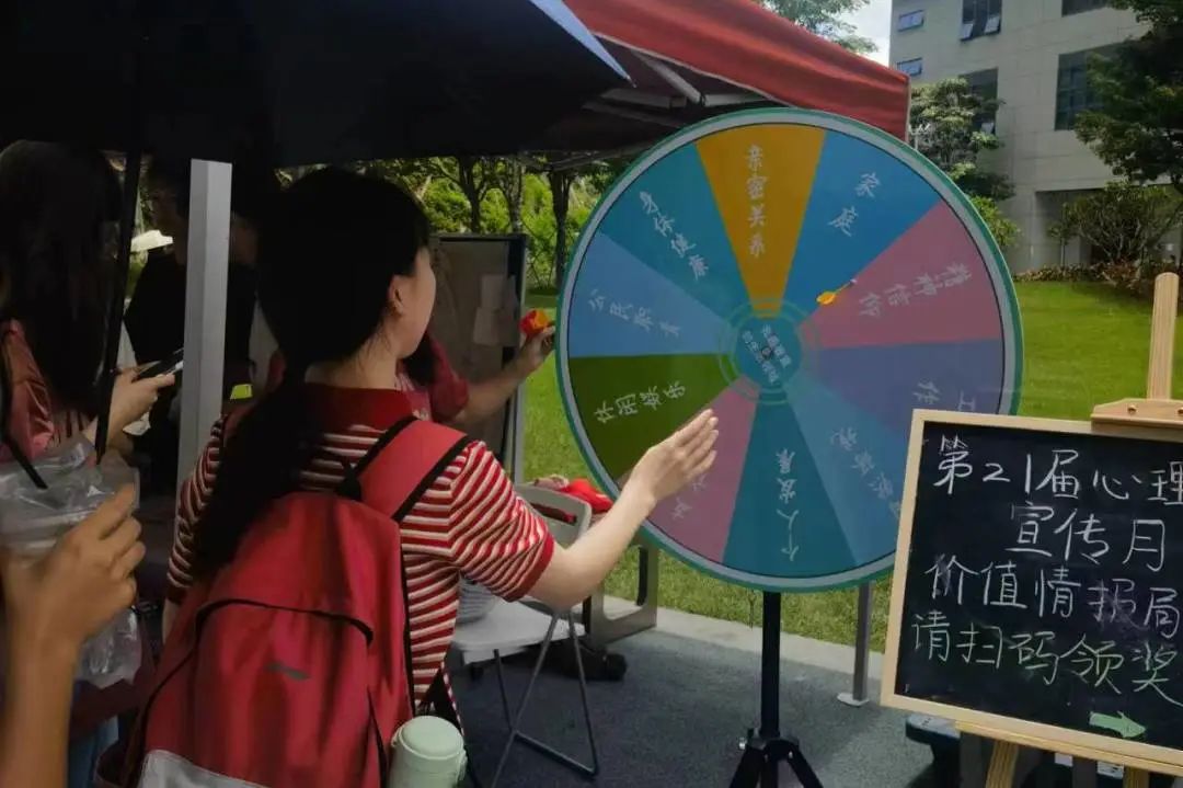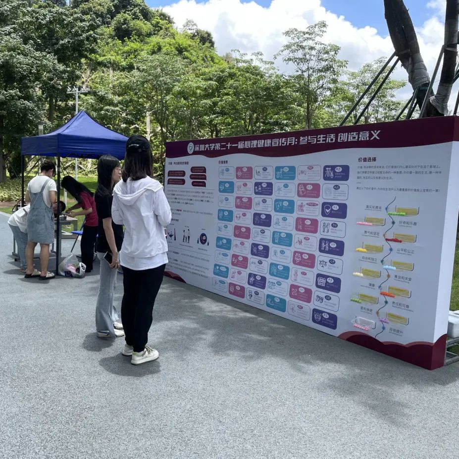 2023年5月25-26日,由深圳大学心理健康教育与咨询中心联合荔进社分别在奥海校区和丽湖校区成功举办”价值情报局”线下摊点活动。本次活动主要包括价值探寻、价值清单、价值选择、价值罗盘四个环节,共有200多名同学积极参与活动。