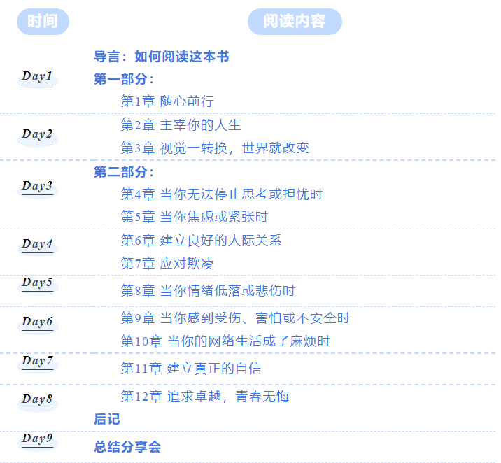 4.主动阅读书籍: 小组成员每日在小组群和打卡圈 (小程序) 打卡分享阅读感悟或实践、讨论困惑内容。