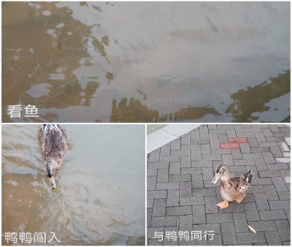7月18日下午5点半左右,校园里洗星湾旁边。每天在图书馆完成学习后,我最喜欢的事情就是选择不同的路径慢慢走回宿舍。这天学累了决定给自己充电,跑到洗星湾一个桥边角落 (算是自己发现的秘密基地),那里有很多鱼聚集,就蹲在那里看了很久的鱼,还婷了一点狗尾巴草去喂鱼,一只鸭子游过来,后来又和鸭子一起走了一段路回去,很满足地吃了喜欢的外卖。