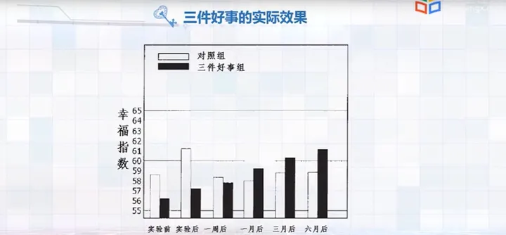 三件好事则能帮助我们将注意力转到生活中的积极层面,从而帮助我们克服大脑中天生的”负面偏好”。环境是相对不变的,而我们能主动选择的,是我们看待所处环境的视角。如果我们更多地关注生活中的积极面,那我们也将过上更加积极的生活。