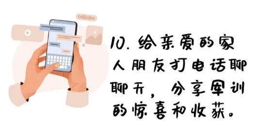 金秋九月,新同学们顺利书写了各自大学生活的第一篇章一-军训。为促进军训期间同学们的身心健康,更好地适应环境、人际关系等方面的变化,心理中心发布“军训期间可以试试的10件小事”小建议,希望同学们在军训期间可以通过生活中的小事,创造珍贵,发现喜悦,分享收获