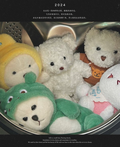 阳光很好,小熊在洗衣机中轻轻旋转,我觉得很舒服很治愈。祝我们每天都有时间享受“HYGGE”时刻。