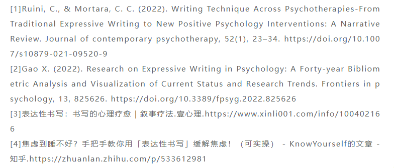 大量研究表明,表达性写作是一种改善创伤和情绪波动的有益方法(Pennebaker &Evans,2014),它可以在认知、情感、社会和生物等多个层面上产生积极影响(Pennebaker,2004)。此外,表达性写作有利于减少焦虑、抑郁症状、创伤后压力症状,并增加主观幸福感。