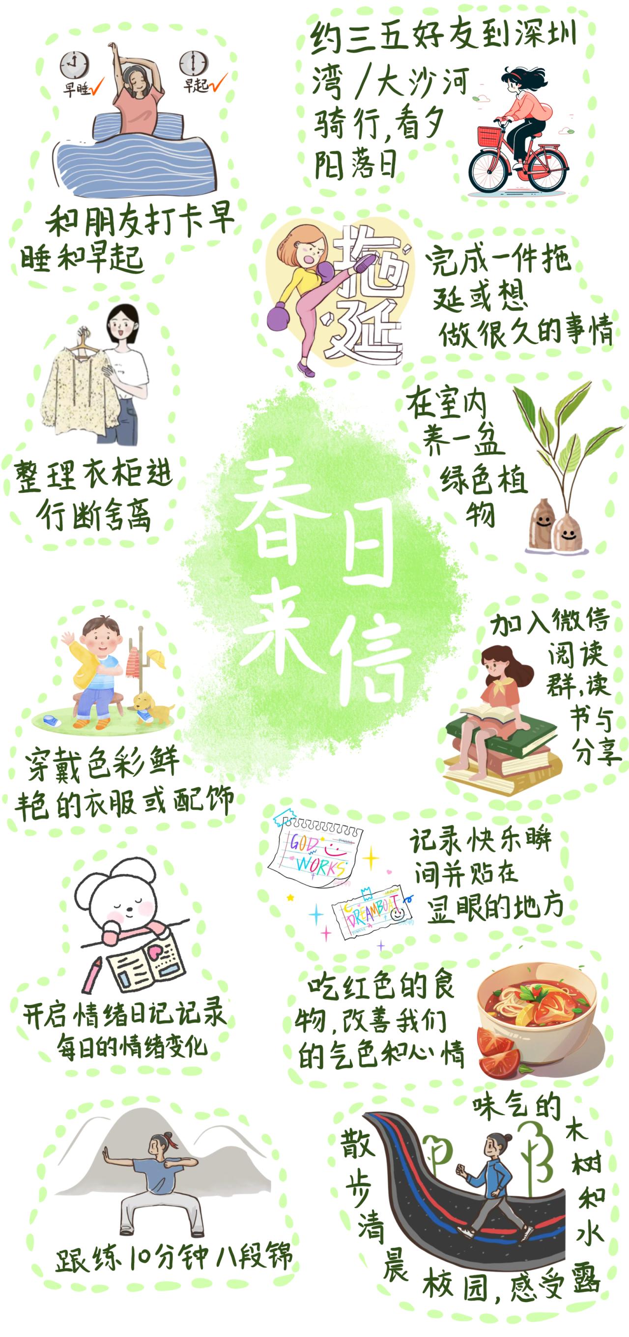 如果用一个词形容春天,你的第一印象是什么呢?或许是春暖花开,或许是阴雨连绵……….春天是大自然的盛宴,饱含温暖的气息。但是,在这个充满希望的季节,我们可能会发现自己的状态并没有期待中那么好,如开学季面对的学业压力、假期结束面对与家人的分离焦虑等情绪波动也可能在消耗我们的精力。
