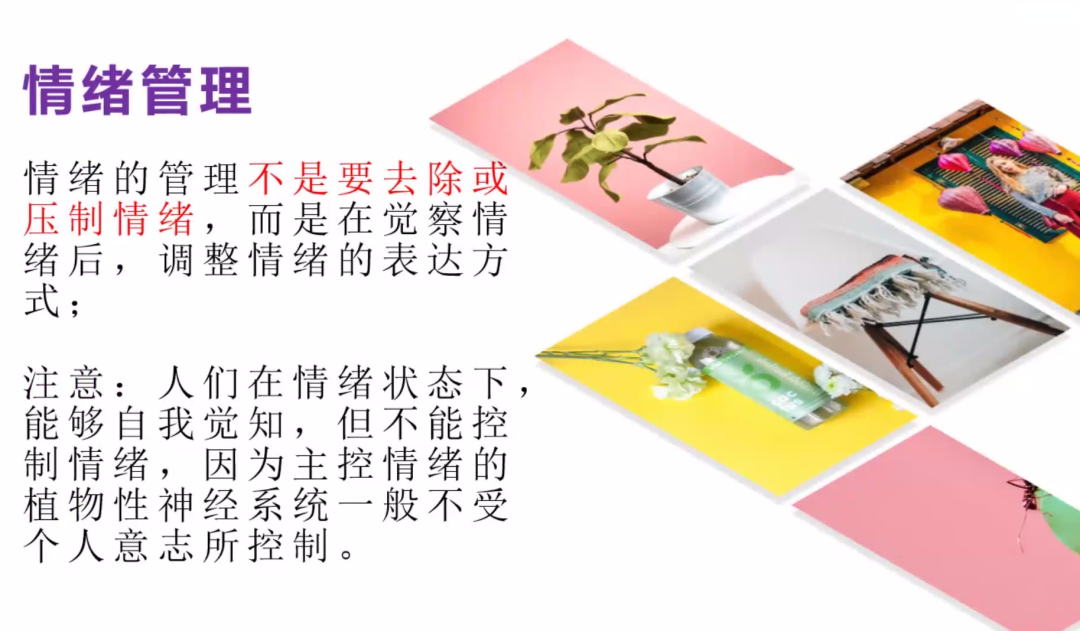 接着,吴老师介绍了“情绪”和“情感”的含义和区别,指出情绪是一种主观感受和内心体验,其背后反映着我们的需要;情绪表达是人际交往中重要的交流方式,影响着我们的记忆、决策、创造力;情绪和情感具有适应、动机、组织、信号的功能,因此情绪管理十分重要。在分享了《头脑特工队》电影的片段后,吴老师强调,智慧的情绪管理不是压抑情绪,而是在觉察情绪后,调整情绪的表达方式,让情绪“富有弹性”,为我们的行动指引方向、为我们的自我认识和觉察提供参考。