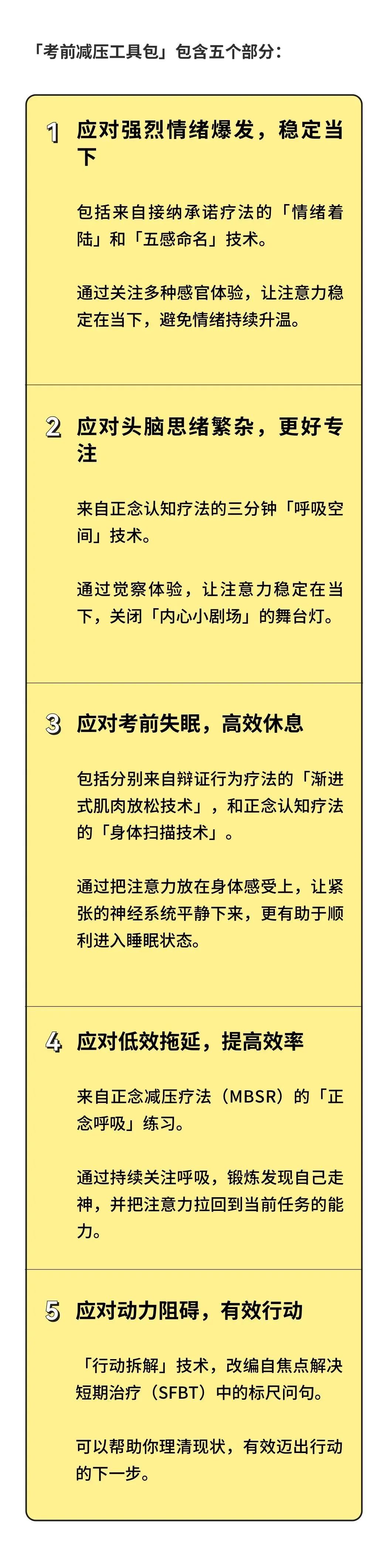 于是,针对这两个目标,我们设计研发了这份「考前减压工具包」。分两步,帮你稳住状态,提高效率。